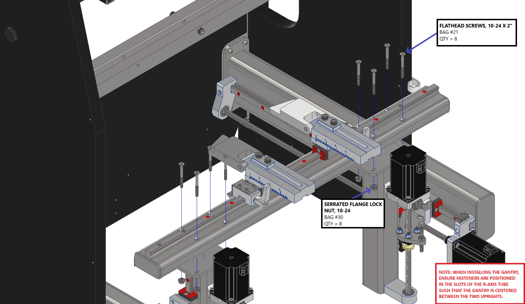 The next step in the assembly process is to assemble the Backgauge Gantry.
