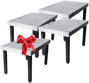 A modular cast iron weld table, the ARCFLAT features precision machined surfaces and 336 fixture holes. There's no welding, no warping, and no wasted time compared to tab and slot tables.