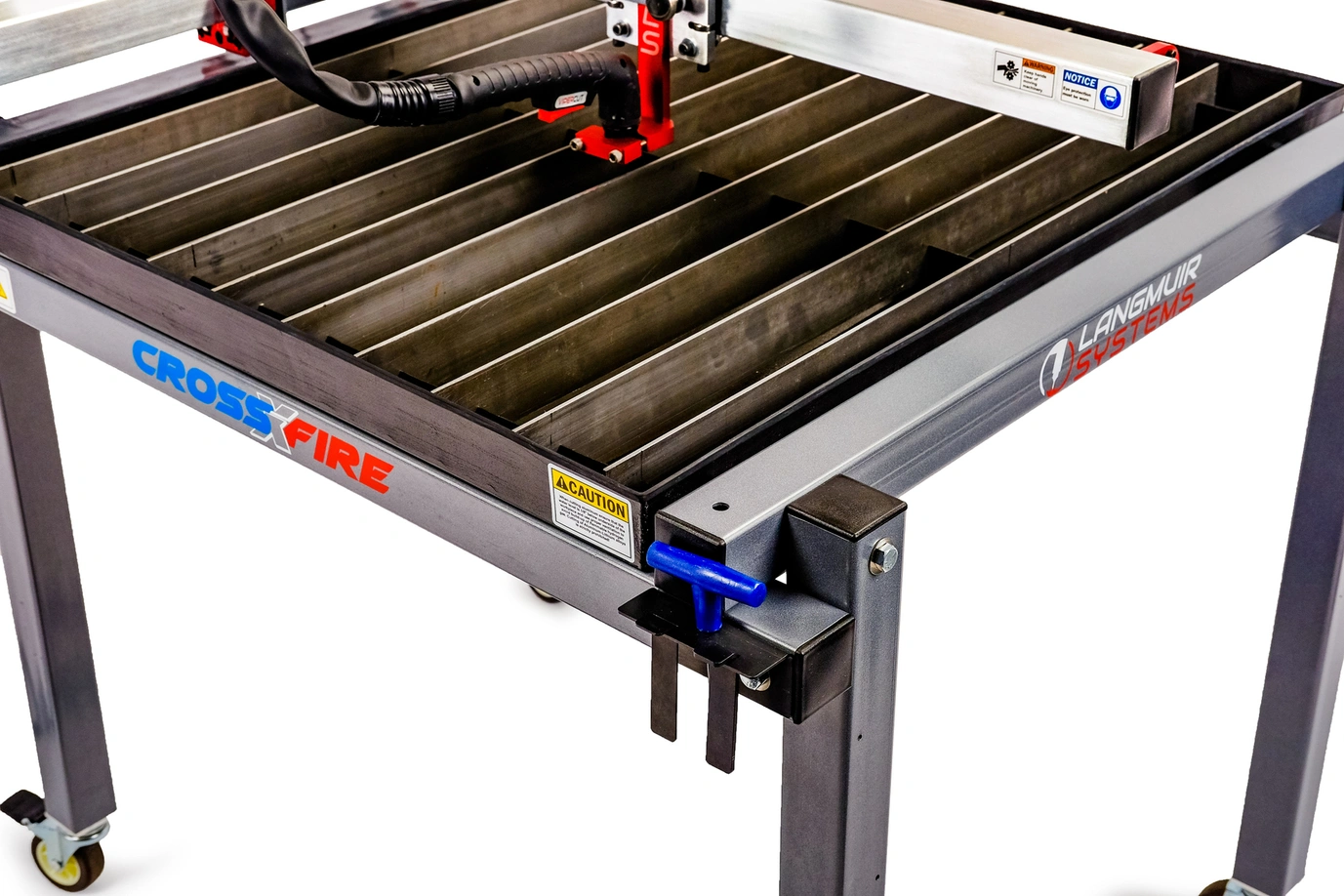 The CrossFire™ was designed with an open slat surface that sits flush to the steel tube frame. This permits open access to much larger plates and allows for material to be clamped directly to the tube frame when cutting.