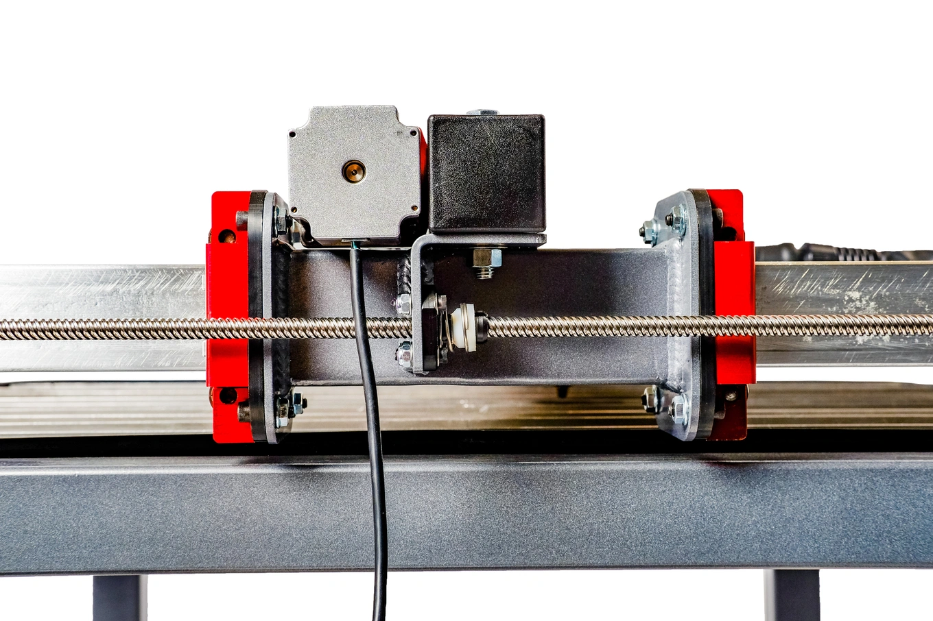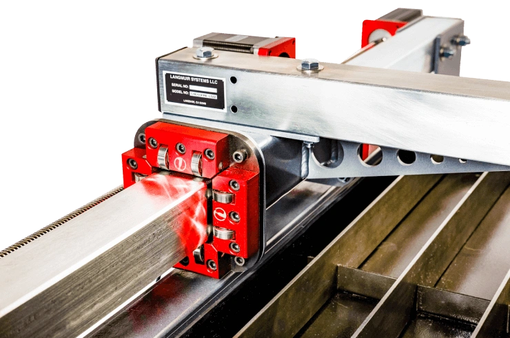 Each machine drive system comes equipped with two precision multi-start lead screws coupled with two anti-backlash wear compensating lead nuts. The aggressive pitch of the multi-start lead screws allows for maximum travels speeds of 250 inches per minute while maintaining peak motor torque. With the wear compensating anti-backlash lead nuts, you'll never have to make micro-adjustments to your setup over time.