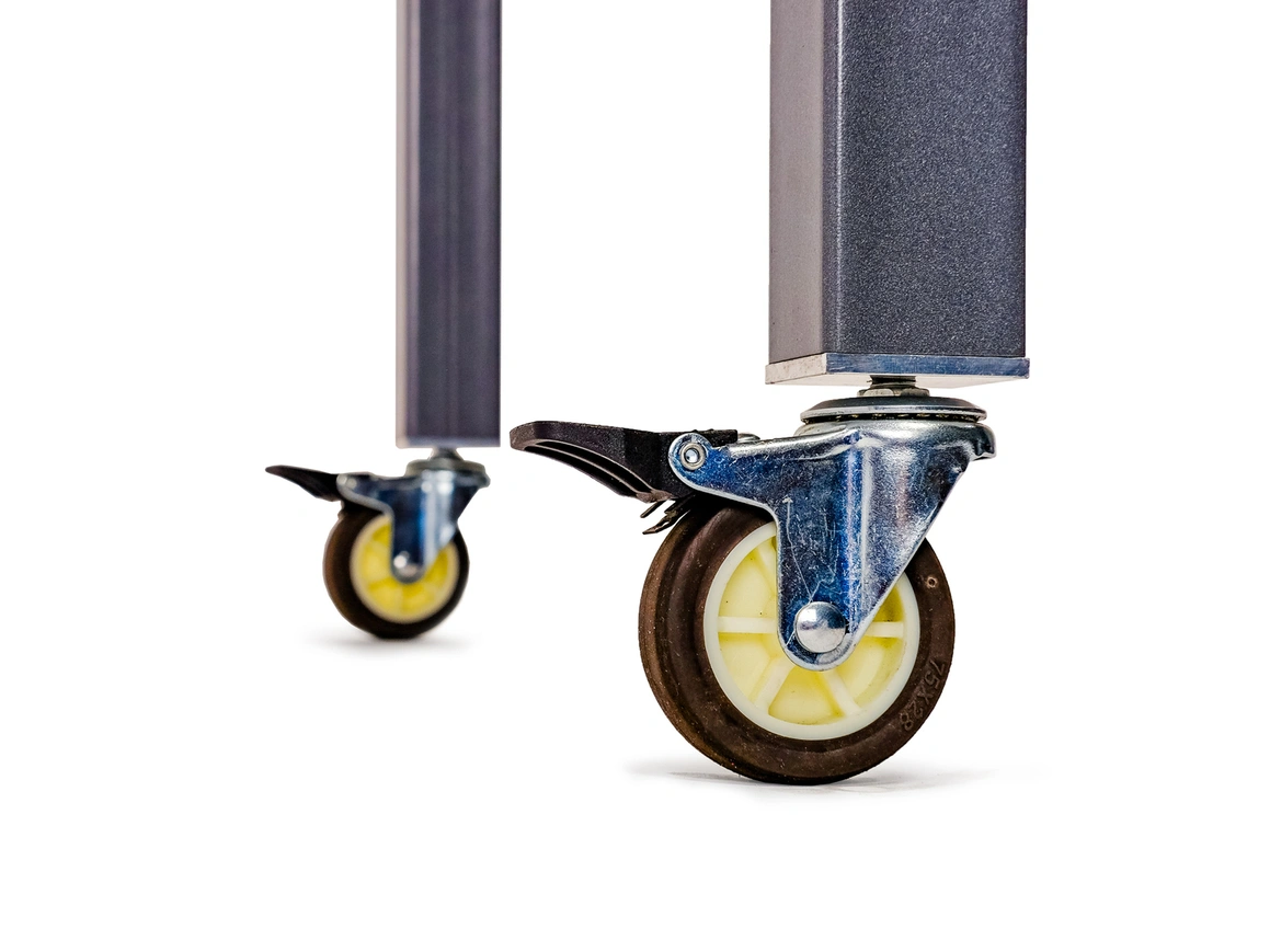 The rigid all-steel construction features structural tubing and vertical plate stanchion supports for increased strength. In addition, the unique triple-pocketed frame design provides for a stiff table surface that can support steel plate material up to 1" thick. Each steel component on the frame is powdercoated metallic gray for a long-lasting and wear resistant finish.