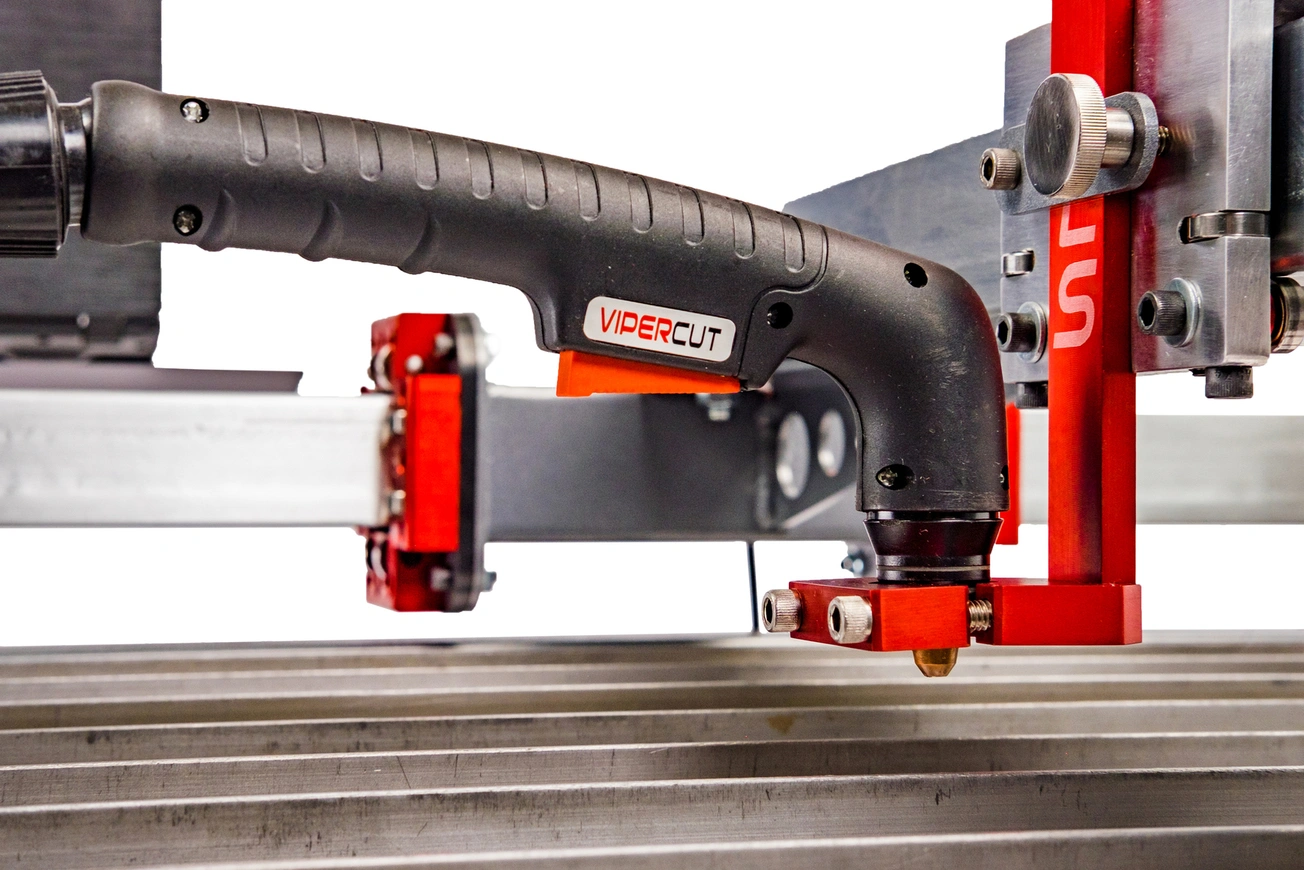 Each machine comes equipped with a universal V-block torch mount which can accept any standard hand or machine plasma cutting torch.
