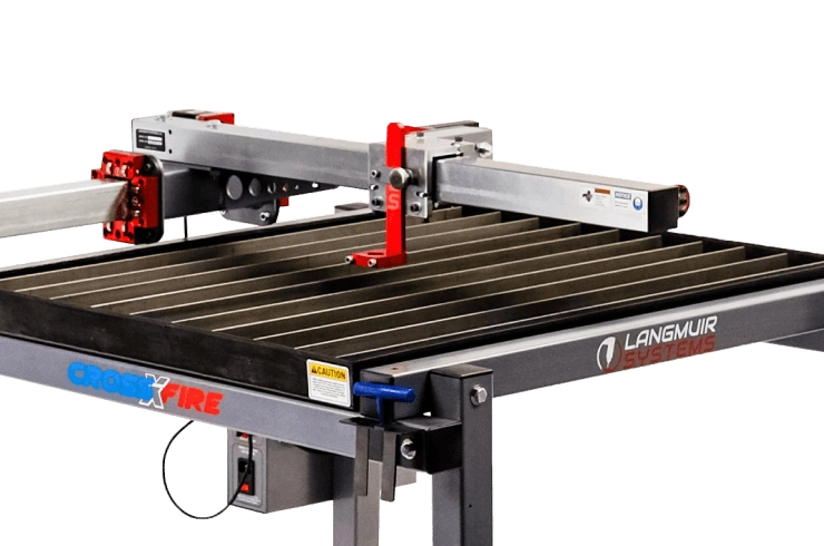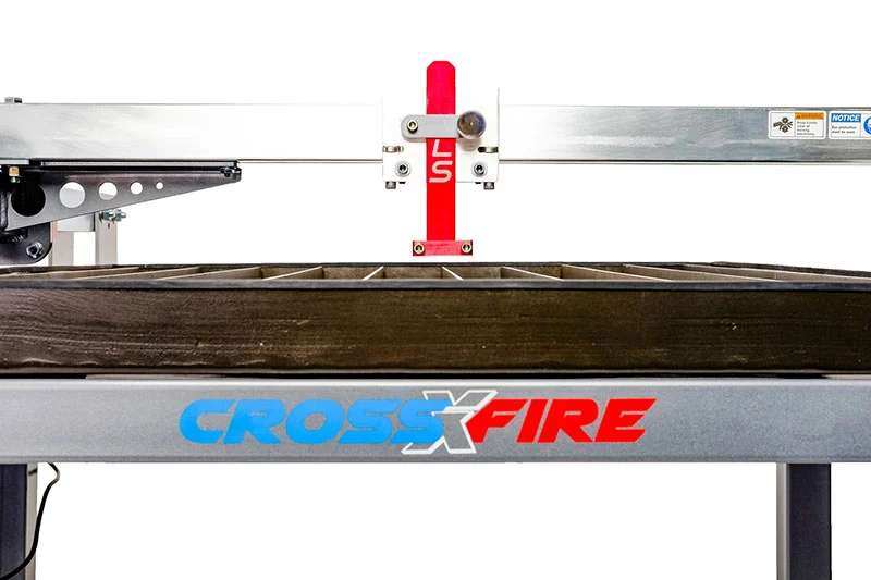 The CrossFire™ CNC plasma machine features a fully cantilevered gantry system for torch movement which allows for complete and unhibited access to the cutting surface for a wide variety of plate shapes and sizes. By indexing material through the machine, the CrossFire™ is capable of cutting much larger sheets of material through subsequent setup operations.