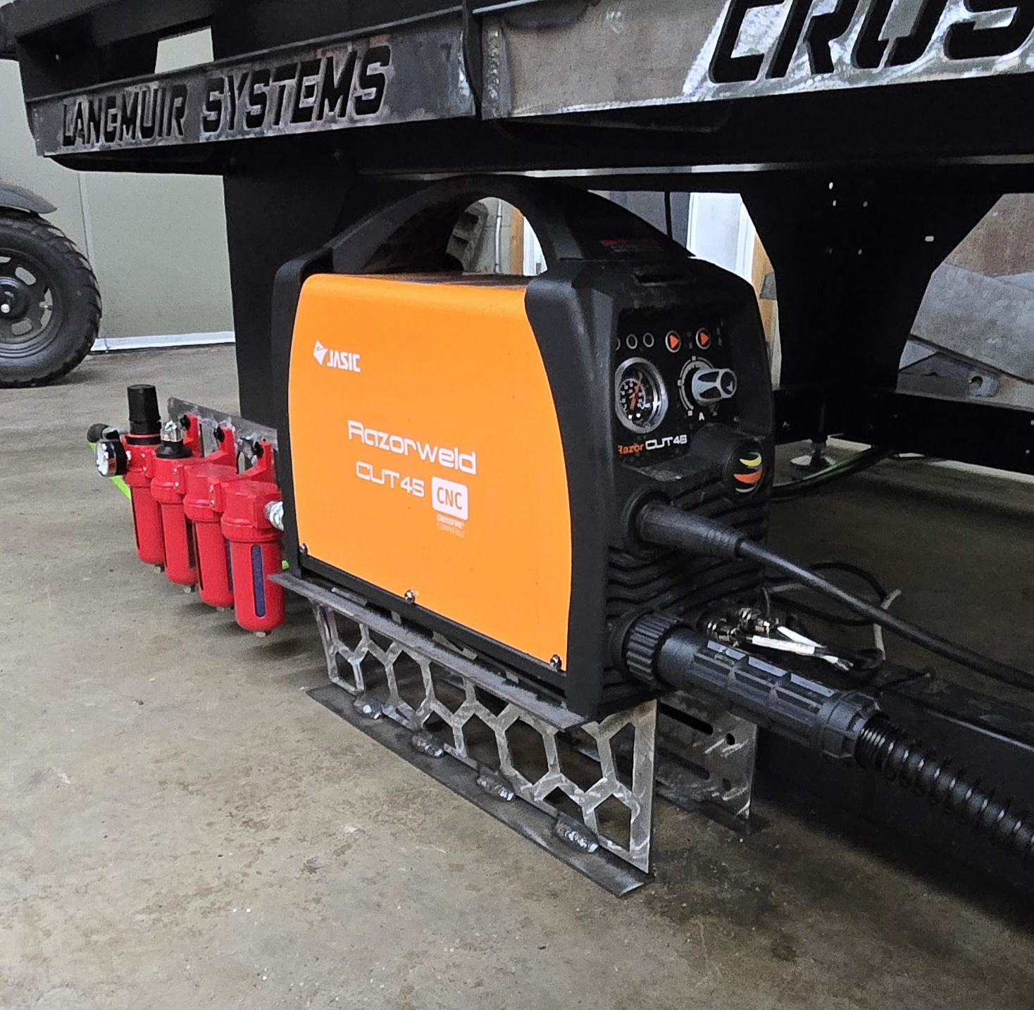 This raises the plasma cutter to the correct height for an inline pneumatic filter. If the rubber feet are used the stand will clear the lower most post of the Crossfire XR and will slot overtop of it. There are also holes in the back most piece for mounting to the rail if preferred. I included amazon pictures of the pneumatic filter and rubber mounts I used to make this work. Weld the top slowly as it will warp with the long slotted holes (as seen in my photos) Recommend 1/8" or slightly larger metal. all holes are slotted with 1/4" slots for multiple steel size options. Welding is required. Happy Cutting!