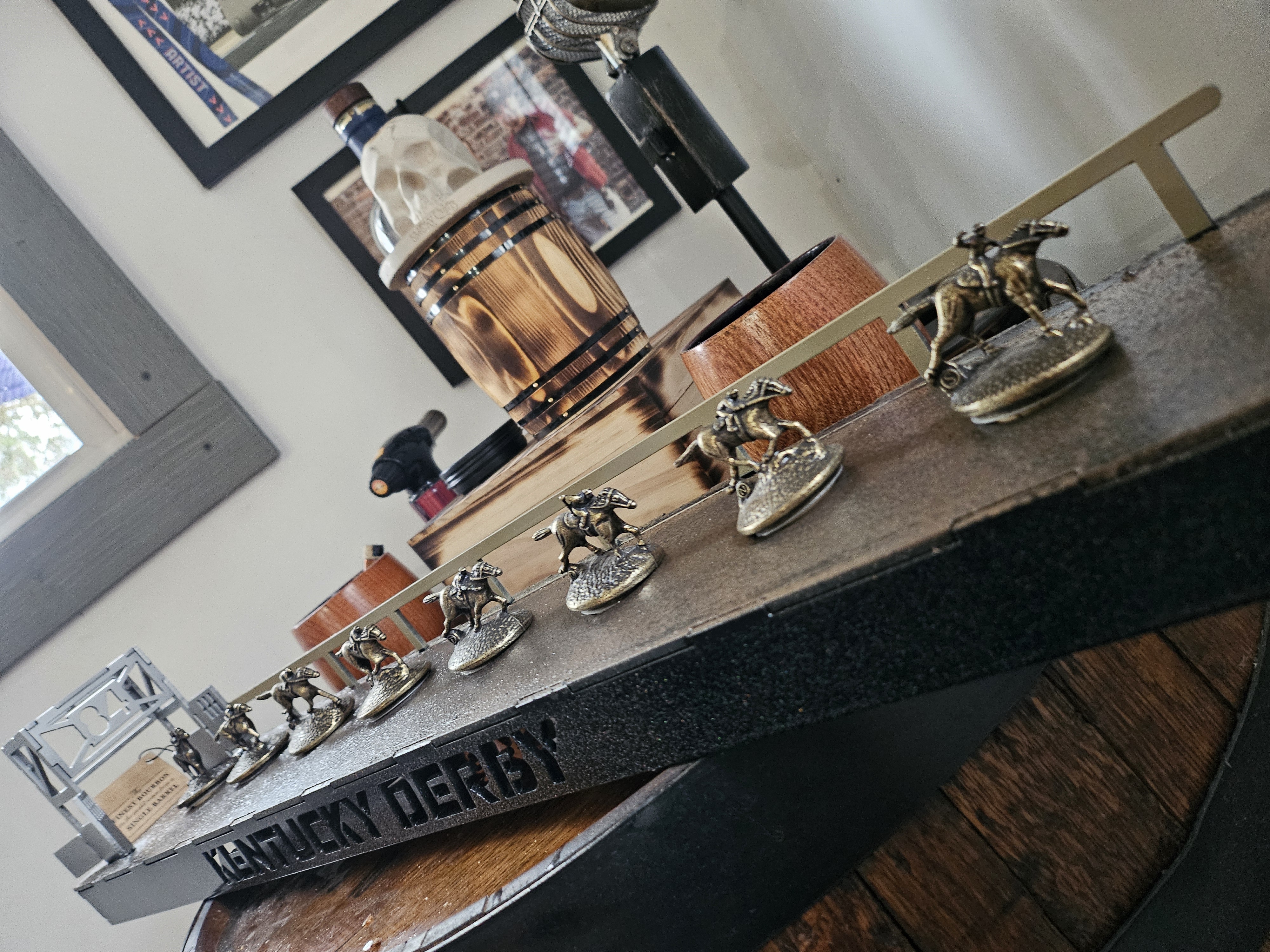 Display all of the Blanton's toppers in the style of the Kentucky Derby! made for .125" or under. #84 number card for 1984 when Blanton's whiskey was founded!