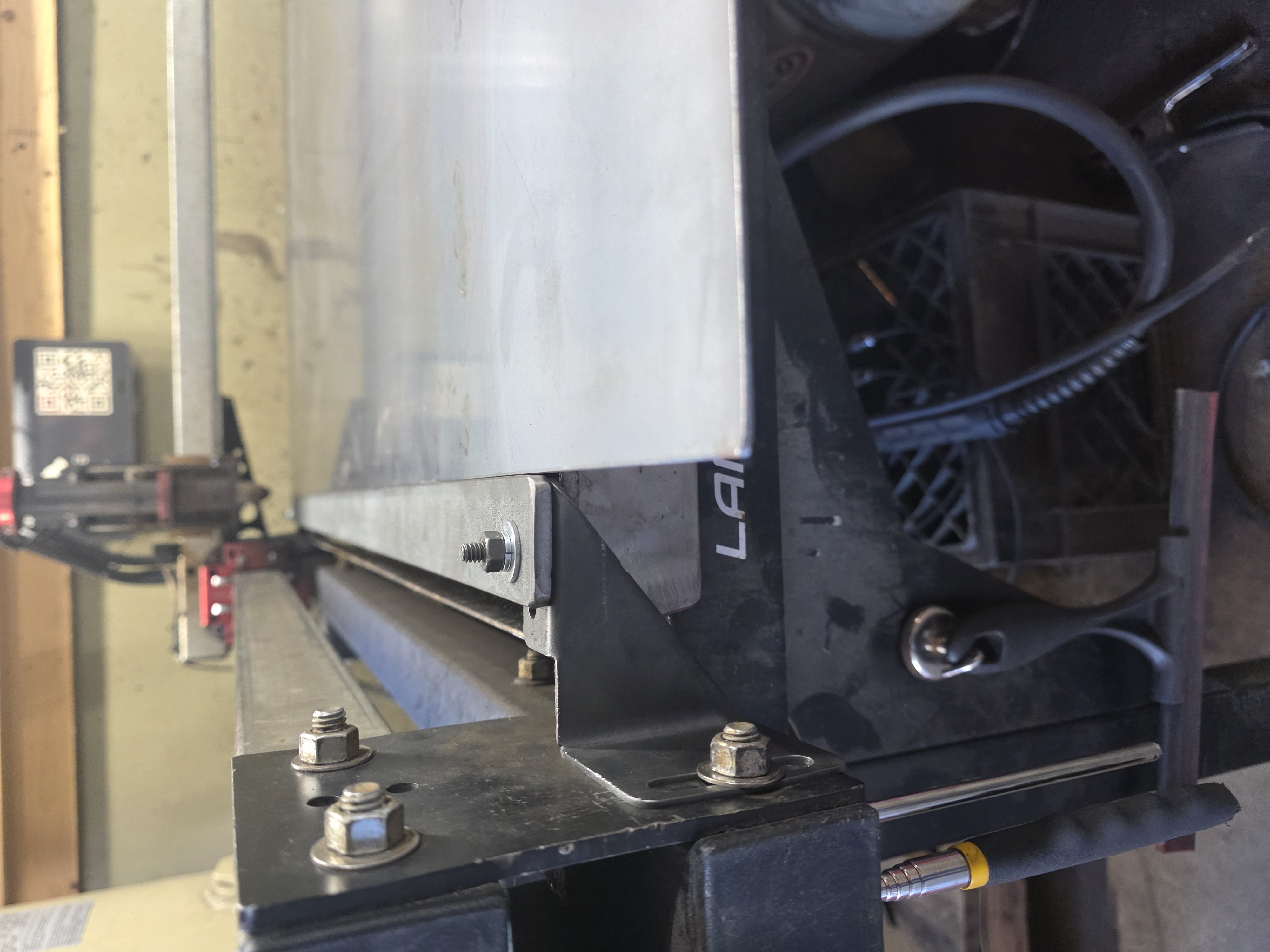 Mounts to lower riser bolts. Allows guide for index cuts and provides a straight edge for sheet placement. bends to 90, reverse for front and back mount at corners and divot. Mount 1/4" flat bar on mounts, attach yard stick on flat bar. Holes are slotted for vertical and horizontal adjustments.