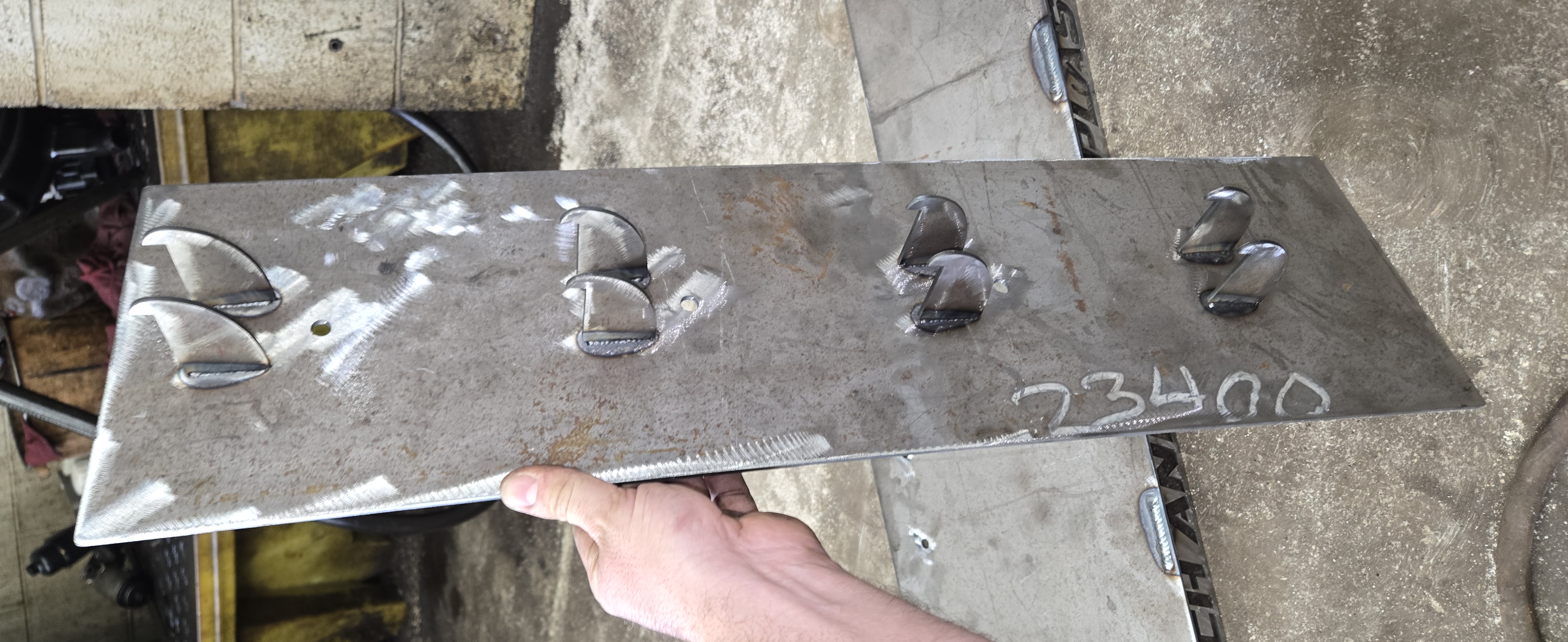 Jack stand wall mounted holder. Holds (4) Harbor freight Jack stands (pictured are part number w41022). You will need (8) of the hanger file and 1 of the main body file. Lag bolt holes are made centered so it can mount directly over a stud in a wall. Full jack stand body fits on metal backing plate so the wall does not get dirty from rust wear or debris getting on jack stands. File made for 1/8 inch steel but can be used with other sizes as well. Does require welding.